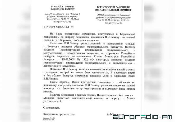 Barysau authorities have declined the petition to remove the Lenin monument from the central square. The document was signed by 935 people but their critical remarks ‘are unfounded and are a personal opinion’, officials replied.