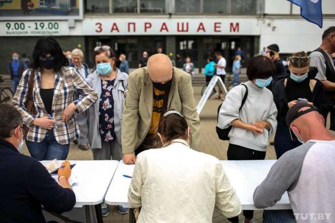On Sunday, 7 June, pickets on collecting signatures for alternative presidential candidates – Svetlana Tikhanovskaya, Viktor Babariko, Valery Tsepkalo and Sergey Cherechen – took place in Minsk. According to volunteers, about 1,300 people gathered, according to journalists – about 800.