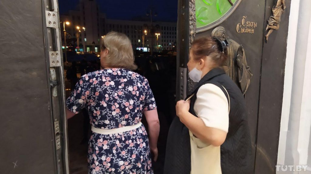 According to TUT.BY journalist, who happened to be inside, the people behaved calmly, waiting for the situation to be resolved. After about 40 minutes, they were able to leave of the church, the square was already empty by that time. Several security officials patrolled the area.