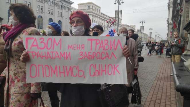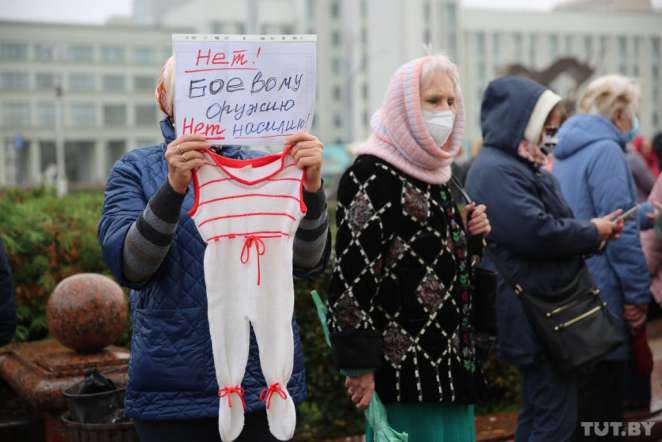 About an hour later, those who had gathered formed a procession and moved along Independence Avenue towards Oktyabrskaya Square. The women were chanting: “Long live Belarus”, “Mothers are against violence”, “All for one and one for all”.