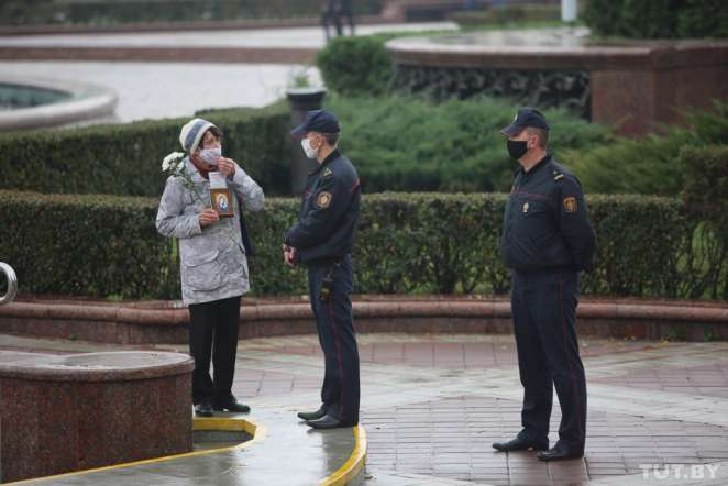 At about 3 pm about a hundred women gathered in the Independence Square near the Red Church. Some of them were carrying flowers, others had banners in their hands, however, most of them came without any symbols.
