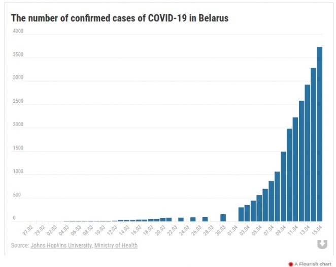 As of 15 April, 3,721 people have tested positive for coronavirus and 36 died in Belarus since the outbreak, the Healthcare Ministry reports.