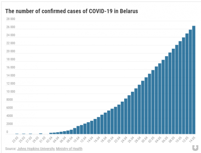Last week, Healthcare Minister Vladimir Karanik said that the incidence of COVID-19 in some areas of Minsk and Vitebsk regions is decreasing. Most patients in Belarus have a mild form of disease, but 15–20% have pneumonia complications.