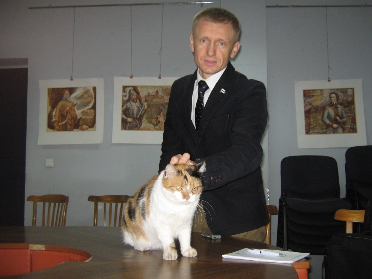 Алексей Янукевич с кошкой Ириской. Два года назад кошку подобрали, сделали ей операцию и выходили
