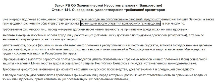 Мы на конкретном примере хотим пояснить, что может быть, если приобрести имущество у организации, где открыта процедура банкротства. Например, читатель ABW.BY приобрел у организации автомобиль, только вот о том, что посредник этот финансово несостоятелен и у него куча долгов перед кредиторами, покупатель не знал. Кредиторы, рассчитывая, что в первую очередь все имущество должника отойдет именно в их пользу, обращаются в суд. Итог - сделка признана ничтожной, сам автомобиль изъят в пользу истца-кредитора, а покупатель остается ни с чем.