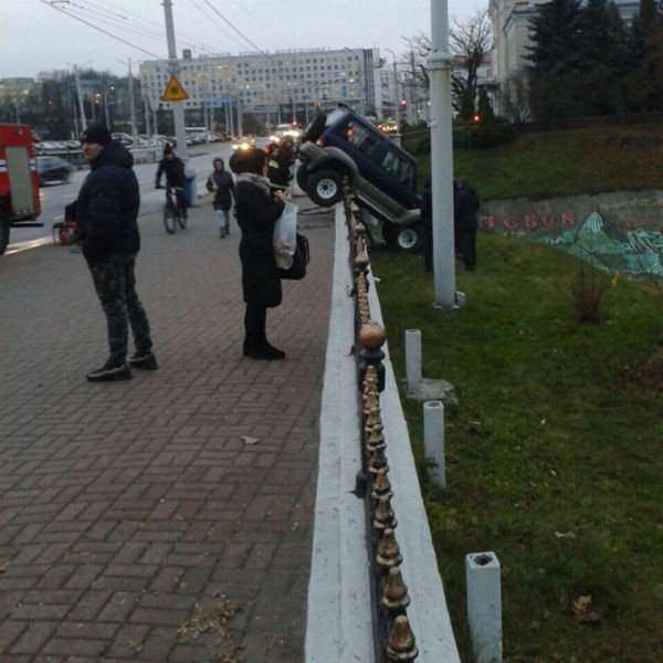 В Витебске внедорожник едва не вылетел в реку с моста