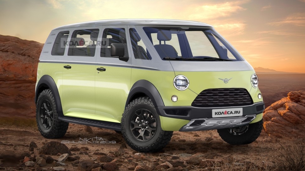 Форма кузова в целом осталась той же, при этом компоновка новая: колёсная база стала значительно больше, а передние колёса «переехали» ближе к бамперу, в то время как водительское место переместилось назад. Всё это должно позитивно сказаться на устойчивости, комфорте и безопасности микроавтобуса. В задней части можно выделить вертикальные фонари, которые теперь стали длиннее и сделаны светодиодными. Изначально автомобили этого семейства обладали повышенной проходимостью, поэтому вполне логично добавить микроавтобусу обвес из неокрашенного пластика и расширенные арки, вмещающие более крупные колёса. Кстати, двухцветный окрас представленного на рендерах автомобиля перекликается со спецверсией УАЗ-220695 «Юбилейная», приуроченной к 60-летию начала выпуска базовой модели УАЗ-450 и имеющей похожее цветовое решение.