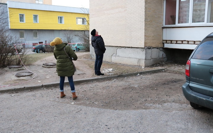 В Барановичах на припаркованные под балконами 12-этажки автомобили обвалилась плитка