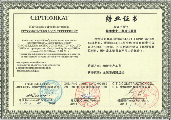 Но и такое обучение стало возможным только после неоднократных жалоб белорусов на его качество. А до этого им сказали так: «Идите в цех, к конвейеру, смотрите, но ничего не трогайте, или сидите в классе, занимайтесь своими делами». Были и определенные сложности. К примеру, на производстве переводчики не знали названия деталей автомобиля на русском языке, поэтому белорусам самим приходилось учить китайцев.