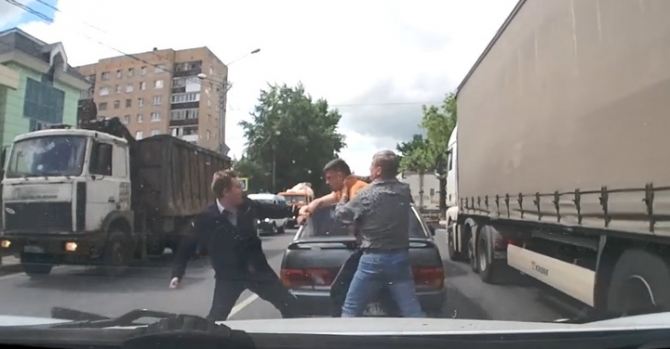 Беседа, явно шедшая на повышенных тонах, перешла в драку – мужчины из внедорожника совместными усилиями избили своего оппонента.