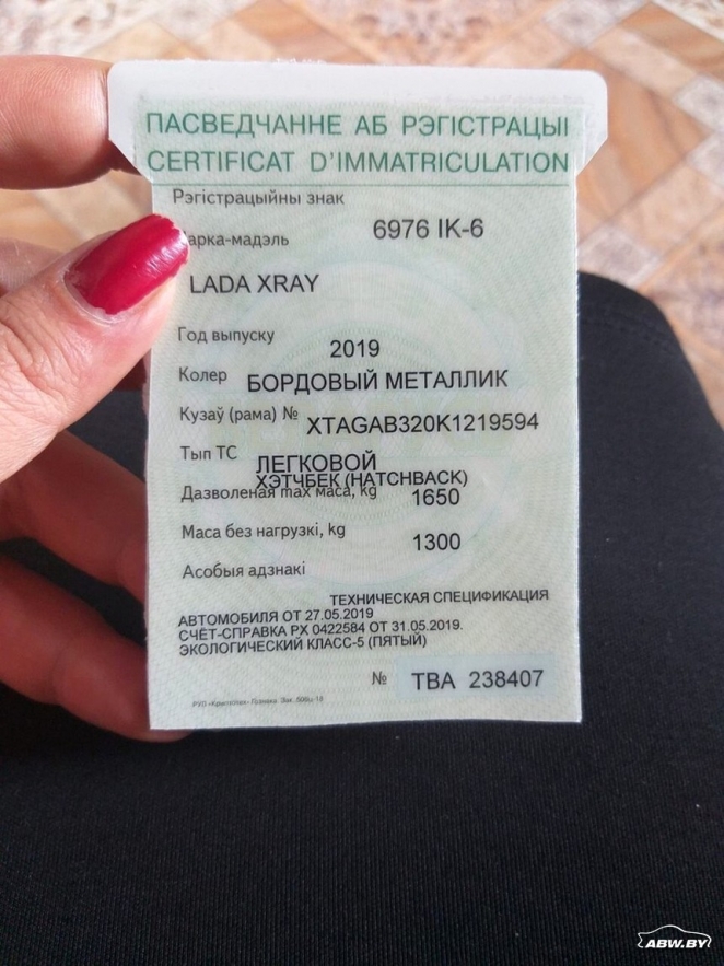 Первая машина, которую предложили автосалону, - Lada Xray 2019 года выпуска. Продавал ее мужчина, хотя автомобиль оформлен на женщину. Он скинул всю информацию, даже паспортные данные и отметку о снятии с учета.