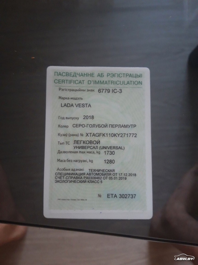 Совсем недавно "Автодому" предложили Lada Vesta 2018 года. Машина из Гомеля, техпаспорт на нее получен 8 января 2019 года.
