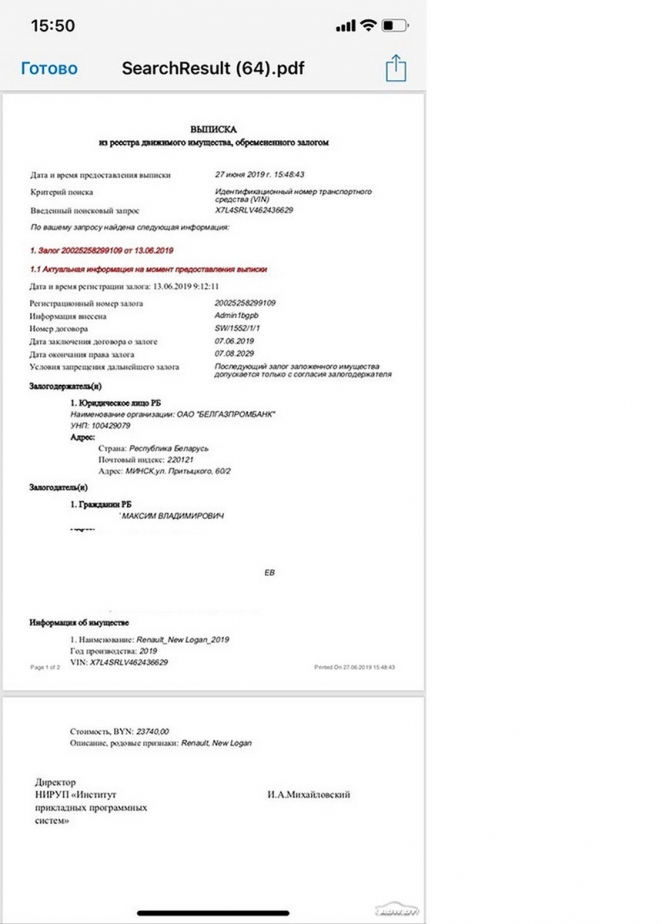 Машина, разумеется, тоже в залоге у Белгазпромбанка.