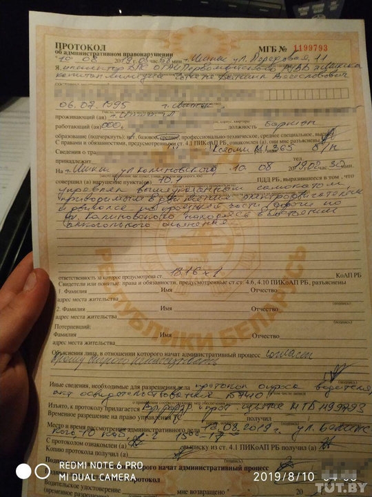 О произошедшем AUTO.TUT.BY сообщила жена главного героя истории и прислала текст постановления.