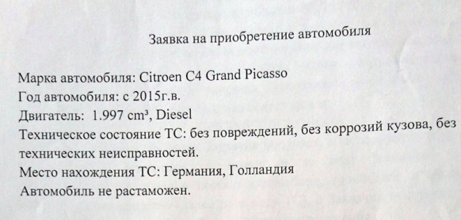 Мы нашли объявление на сайте по продажам автомобилей фирмой ООО "Техбелстройкомплекс", которая находилась в деревне Стайки Барановичского района. Эта фирма недоверия не вызвала. Работает по договору, деньги только через банк. Привез договор менеджер Андрей. Хотели купить Citroen Grand Picasso 2015 годы выпуска, 2.0 дизель. Эта организация по договору обязалась найти такой автомобиль в Европе и доставить его нам для оформления.
