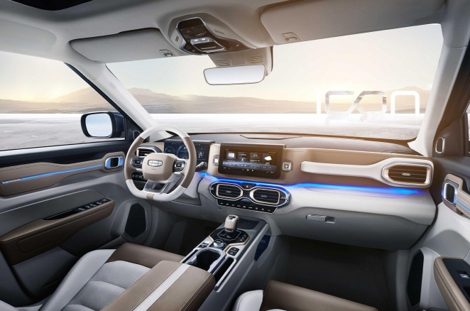 Серийный Geely Icon во многом похож на концепт. Например, он сохранил горизонтальную прямоугольную решетку радиатора, вертикальные фары и тонкие полоски светодиодов над ними. Двери автомобиля оснащены выдвижными ручками, а в задних фонарях светодиоды образуют знак бесконечности.