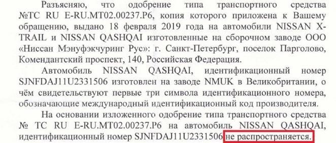 Направили в адрес УГАИ заявление о постановке легкового автомобиля Nissan Qashqai на учет и приложили копию Одобрения типа транспортного средства, полученную от дилера. Ответ ошарашил: это одобрение типа транспортного средства на наш легковой автомобиль Nissan Qashqai не распространяется. При этом нет ни одной ссылки на какой-либо нормативный правовой акт.