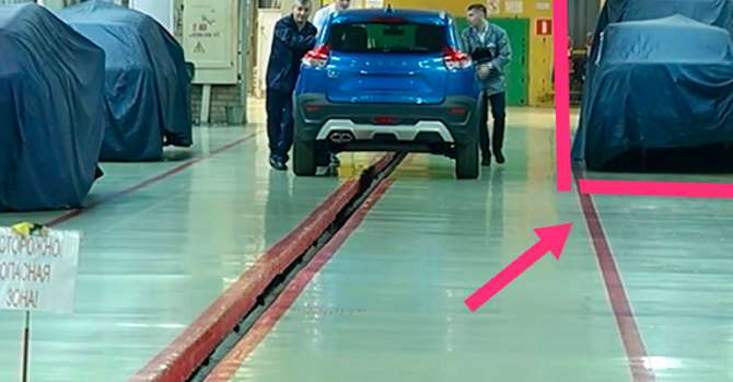 На кадре (начиная с 45 секунды) видно сразу несколько стоящих под чехлом автомобилей, однако один из них значительно превосходит по габаритам все выпускаемые нынче «Лады», в том числе кроссовер XRay.
