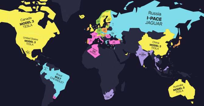 Компания Uswitch выяснила, какие электрические модели наиболее популярны в разных странах мира, составив соответствующую карту. Tesla оказалась в фаворитах в 21 стране из 60, а самой популярной стала Model 3, которую предпочитают в 19 странах.