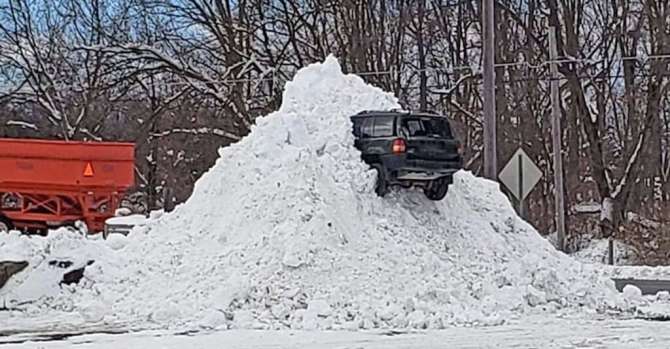 Никто не понял, как этот Jeep застрял в огромной куче снега на большой высоте