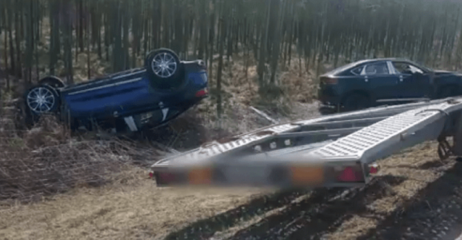 В Белыничском районе опрокинулся автовоз с новыми Geely
