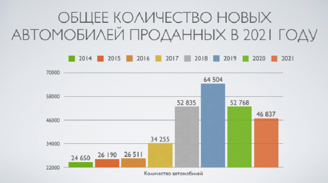 В 2021-м было продано 46 837 автомобилей, в то время как в пандемийном 2020-м – 52 768 новых авто, а в 2019-м и вовсе 64 504 штуки. Как сказал член правления БАА Сергей Варивода, рынок ужался, откатившись до показателей 2017-18 годов.