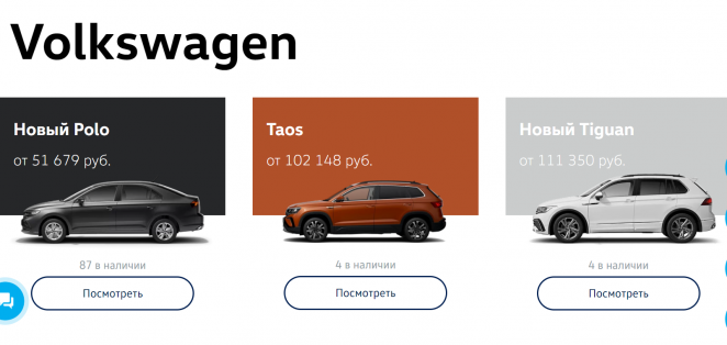Информация о ценах и количестве автомобилей VW, которые в наличии, размещена на официальном сайте дилера. В Беларуси есть 87 VW Polo, по 4 Taos и Tiguan, а также 1 Touareg.