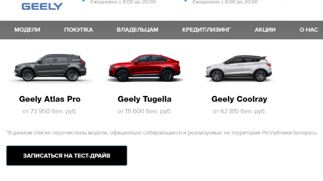 Белорусско-китайский БелДжи, как и прежде, предлагает покупателям три модели: Coolray, Atlas Pro и Tugella. Авто в наличии нет, поэтому желающим приобрести «отечественный» автомобиль придется немножко подождать. Подробнее о ситуации с ценами на Geely «Наша Ніва» писала ранее.