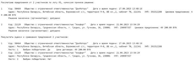 В мае купил новый автомобиль Поставский исполком — чуть более чем за 50 тысяч рублей. Дороже автомобиль выбрал Гродненский областной исполнительный комитет, в начале мая разместили заявку на покупку машины за 80 тысяч рублей. В обоих случаях среди условий было отмечено, что транспорт должен быть произведен в 2023 году.