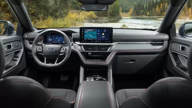 Салон Ford Explorer 2024 претерпел более существенные перемены. Внутри установлена полностью новая передняя панель: она компактнее, что освобождает больше места для ног. Также появилась улучшенная мультимедийная система с большим 13,2-дюймовым тачскрином и сервисами Google.
