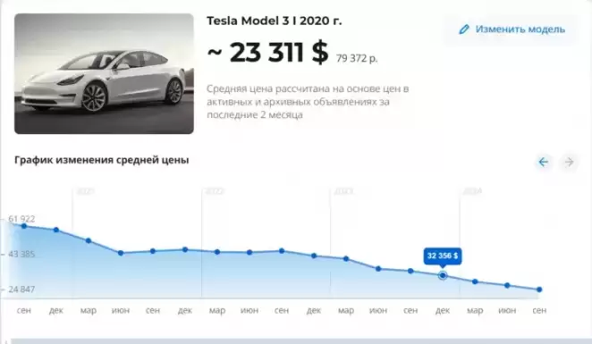 Tesla model 3 2020 года выпуска в декабре 2023 года в Беларуси в среднем стоила $32 тысячи. Спустя год средняя цена снизилась до 23 тысяч долларов.