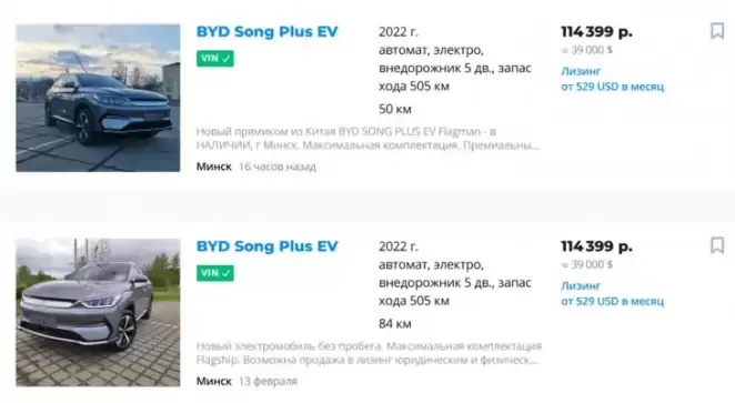 Примечательно, что подержаных BYD Song Plus EV почти нет в продаже. А цены на годовалые авто с пробегом начинаются с 20 тысяч долларов, что чуть больше 50% от цены, которую нужно было заплатить за это авто год назад, когда оно было новым.
