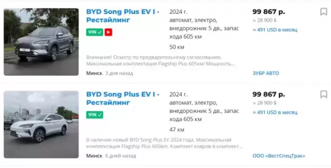 Сейчас новые BYD Song Plus EV доступны по ценам от 24 500 до 29 500 долларов.
