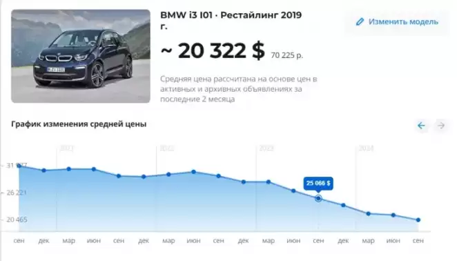 Так, например, BMW i3 2019 года выпуска потеряла за год 14% от прошлогодней цены — 23 600 долларов против 20 322.