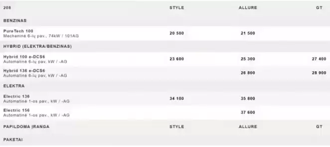 Например, цены на новое Peugeot 208 с бензиновым двигателем в Литве начинаются с 20500 евро, а самая дешевая «электричка» в аналогичной комплектации стоит уже от 34100 евро.