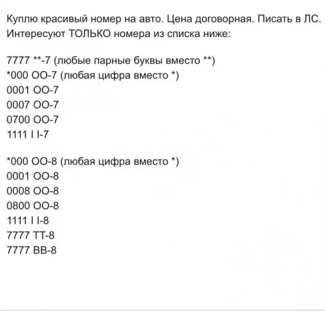 Кроме нескольких объявлений о продаже красивых номеров с восьмым регионом, хватает публикаций и от потенциальных покупателей.