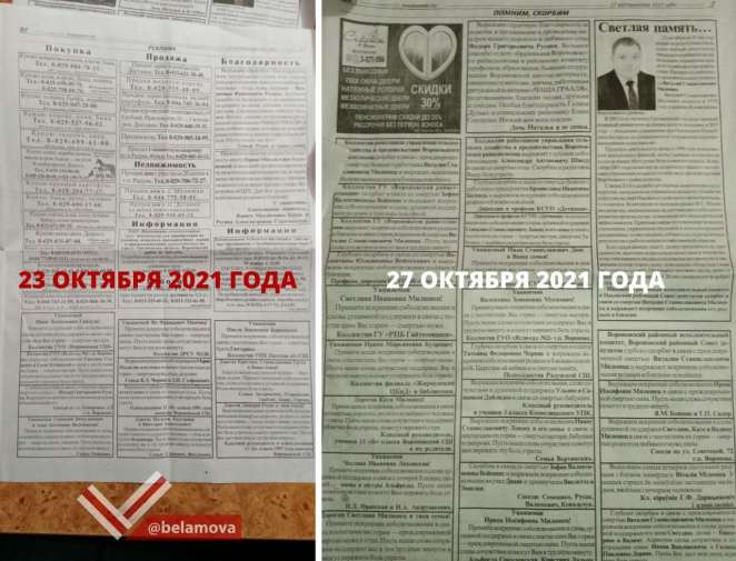Газета Вороновского района вышла с целой страницей соболезнований умершим