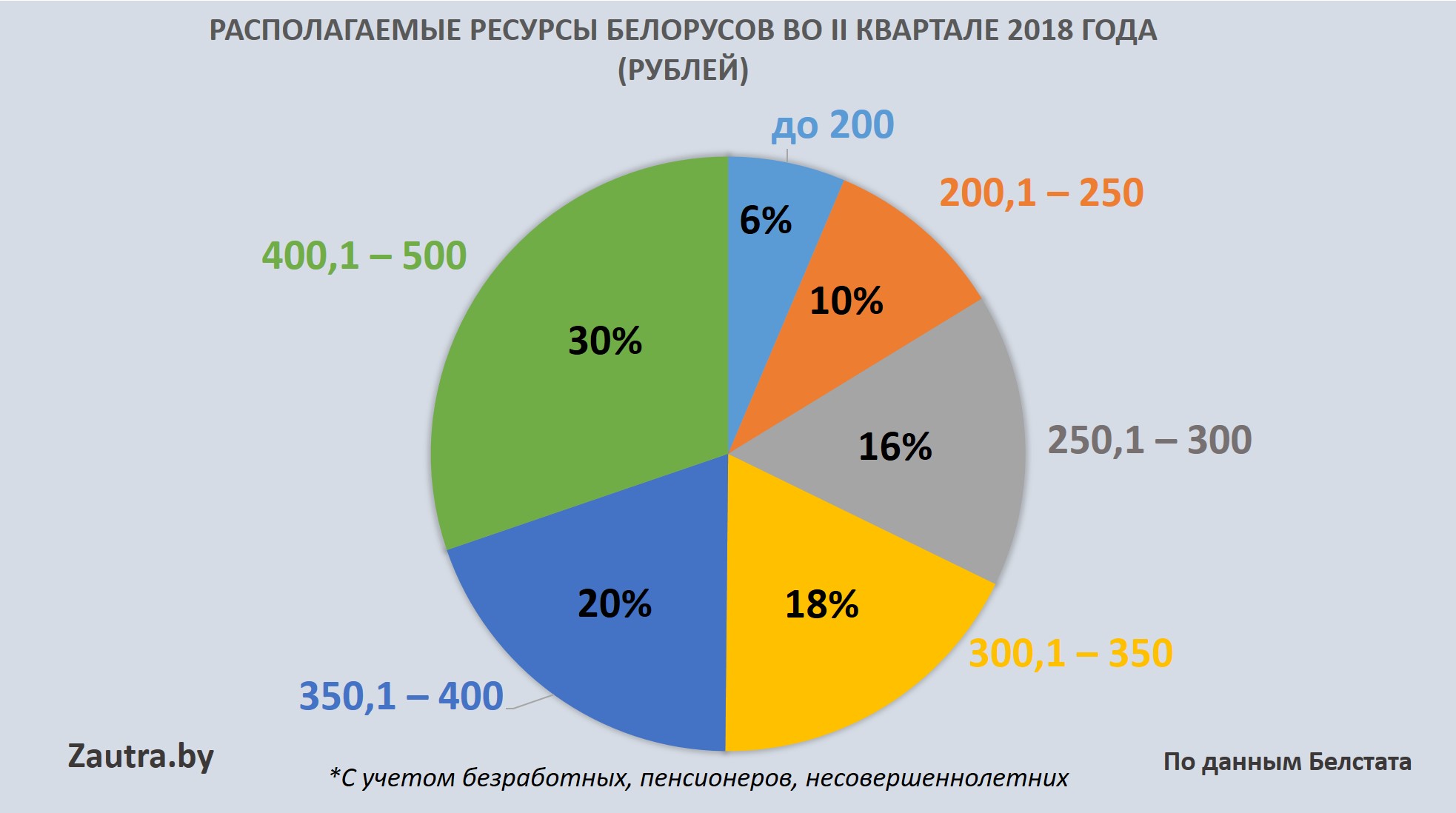 Исходя из данных Белстата, почти 66% белорусов (с учетом не только работающих, но и детей и пенсионеров) располагают ресурсами меньше 500 рублей в месяц. Пусть этот показатель не отражает напрямую уровень зарплат, тем не менее он показывает, на какие средства живут белорусские семьи.