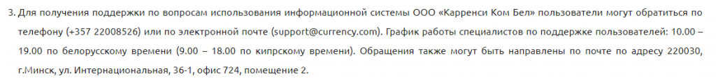 Соответствующий номер с кипрским телефонным кодом и уточнением кипрского часового пояса размещен на сайте криптобиржи. Звонящих туда приветствует автоответчик, предлагающий оставить свои контактные данные для обратной связи. Однако в официальном ответе компания заверила, что их служба поддержки находится в минском офисе.