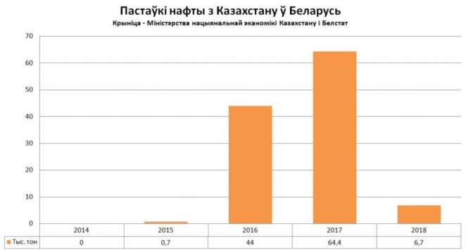 Беларусь покупает нефть в Казахстане и сегодня, но объемы ее, по информации Министерства национальной экономики Казахстана, очень небольшие: максимум был в 2017 году – 64,4 тыс. тонн железнодорожным транспортом.