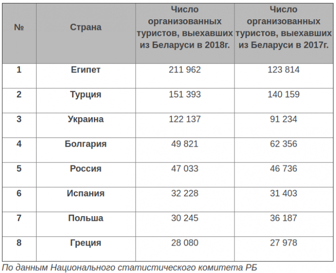 Также меньше белорусских туристов в 2018 году отправилось в Польшу, Черногорию, на Кипр, в Таиланд и Индию.