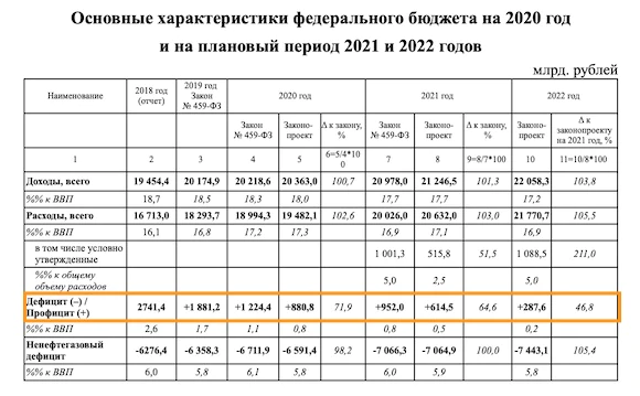 Так, профицит бюджета-2020 составит 880 млрд рублей, тогда как в валюту будет вложено 2,333 трлн. Это означает, что 62% интервенций будет профинасировано долгом.