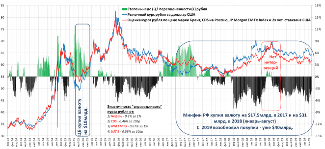 Очевидным образом это стало следствием осознанной политики Минфина и ЦБ, направленной на структурное удержание курса рубля на заниженном уровнем. Таким образом, осуществляется еще одна форма трансферта благосостояния из карманов населения в бюджет и прибыли экспортеров. Цели достигнуты: ЗВР и ФНБ восстановлены на почти докризисных уровнях, инфляция «как в морге», экспортеры защищены от падения мировых цен на нефть, газ и металлы и могут выплачивать высокие дивиденды и оплачивать нацпроекты.
