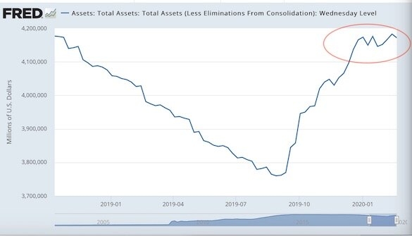 Этот отток ликвидности с рынков ФРС США никак не компенсировала, показывает статистика ФРБ Сент-Луиса. Весь 2020 год «печатный станок» американского центробанка стоит в режиме ожидания: его по сравнению с началом января практически не изменился - 4,171 трлн долларов против 4,173 трлн.