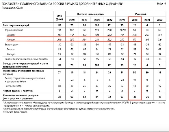 Тогда ЦБ считал риском неконтролируемую эскалацию торговой войны между Китаем и США, допуская падение цена на нефть Urals до 25, а в короткие промежутки - до 20 долларов за баррель в первом квартале 2020-го.
