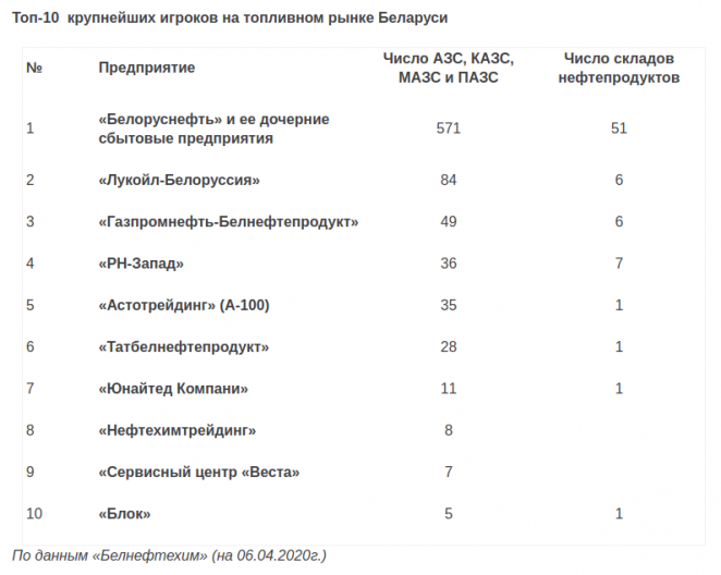 Топ-10 крупнейших игроков на топливном рынке Беларуси