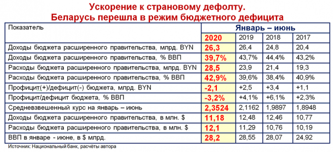 По мнению эксперта, если политический кризис не разрешится, то уже в конце этого года и на 100% в начале 2021-го года у белорусского правительства останутся только плохие варианты действий: активизация денежного печатного станка, сокращение зарплат и пособий, повышение налогов и штрафов, а также рост цен на ЖКХ, транспорта и других услуг.