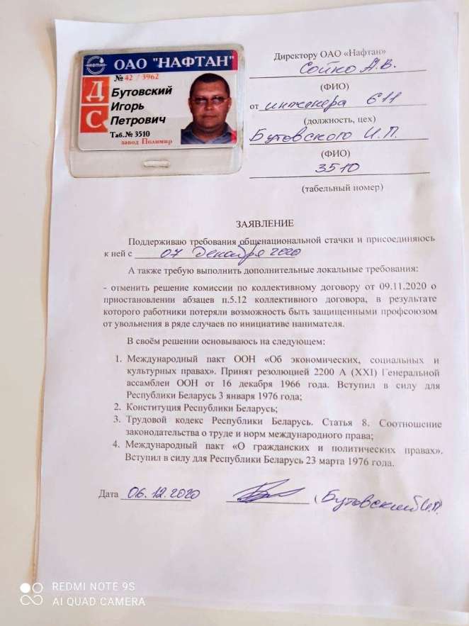 — Как настоящий гражданин своей страны и представитель свободолюбивого белорусского народа я не могу смотреть на происходящий беспредел в стране в целом и на нашем предприятии в частности. Закон не соблюдается, а переворачивается с ног на голову. У людей нет никакой правовой защиты. Нас хотят сделать безликими и безмолвными, — говорит Игорь Бутовский.