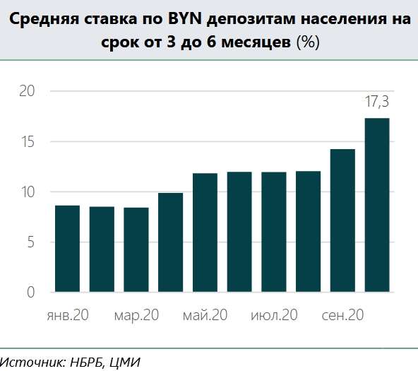 Одновременно, ставки по потребительским кредитам отдельных банков колеблются в диапазоне 25-30%. Нацбанк Беларуси сохраняет РВСР (расчетную величину стандартного риска) для новых кредитов физлиц в районе 13%, делая кредитование по ставке выше данного порога крайне малопривлекательным из-за повышенных регуляторных требований.