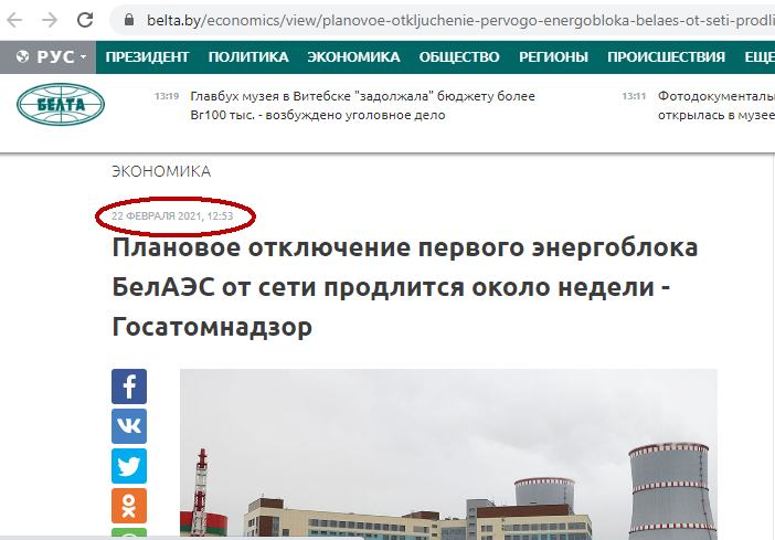 При этом на официальном сайте «Белорусской АЭС» в разделе «новости» (впрочем, как и в любом другом) отсутствует информация о, якобы» плановом отключении энергоблока.